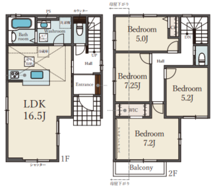 | 特色 | 新築、フラット35対応、駅歩5分、角地、駐車2台、システムキッチン、対面式キッチン、床下収納、ウォシュレット、小学校3分、スーパー8分、コンビニ5分 |