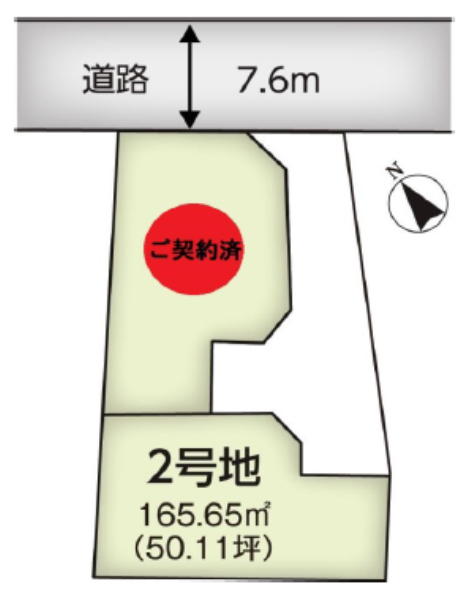 居住用土地50.1坪、建築条件無、前面道路7.6m、都市ガス、上下水道引込済 小学校13分、スーパー13分 |
