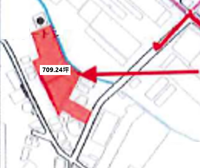 事業用土地709.24坪、建築条件無、前面道路6.5m、都市ガス