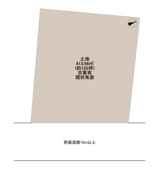 居住用土地125.13坪、建築条件無、前面道路16.09m、上下水道引込済、プロパンガス 小学校6分、スーパー10分、コンビニ6分 |