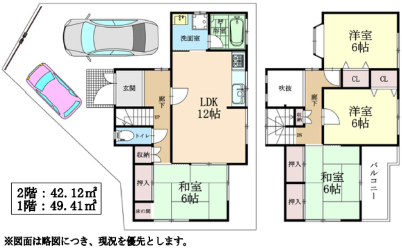全面リフォーム、H11年築、角地、駐車2台、前面道路8.7m、床下収納、吹抜け 小学校4分、スーパー2分 |