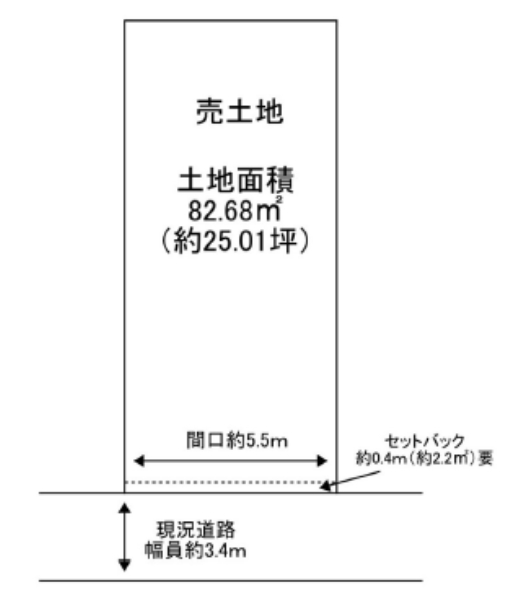 | 居住用土地25.01坪、建築条件無、前面道路3.2m、都市ガス、上下水道引込済 |