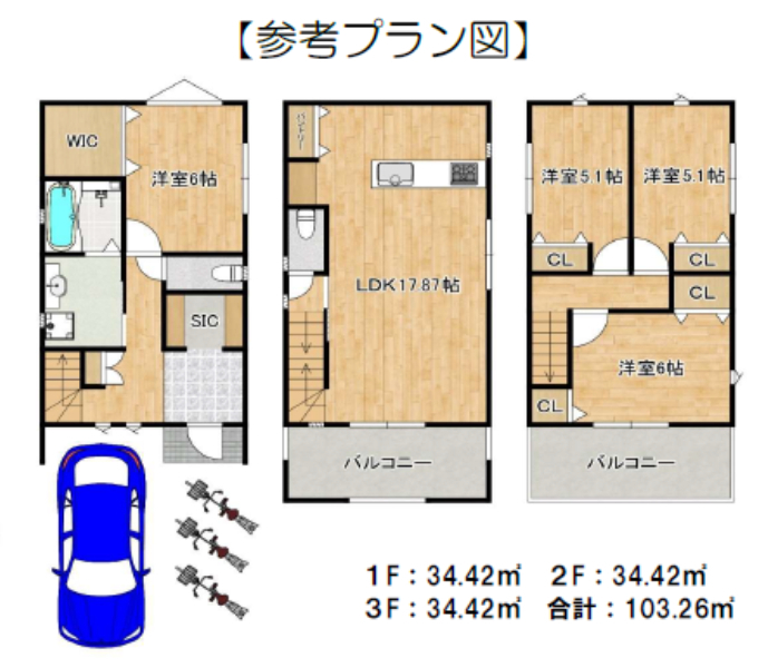 居住用土地16.19坪、建築条件無、前面道路6.38m 小学校15分、スーパー7分、コンビニ7分 |